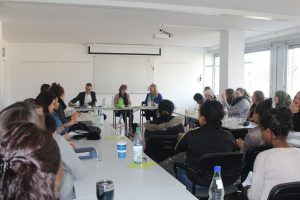 Am 19.02.2018 besuchte die Frankfurter Sozialdezernentin Prof. Dr. Daniela Birkenfeld den VbFF. Zahlreiche Teilnehmerinnen* aus dem Kurs „Ankommen-Weiterkommen“ und aus verschiedenen (Teilzeit-)Ausbildungsprojekten nutzen die Chance, der Frankfurter Sozialdezernentin eigene Fragen zu stellen. Frau Prof. Dr. Birkenfeld zeigte sich interessiert an den Erfahrungen der Frauen*: „Für mich ist es ganz wichtig, aus erster Hand von Ihnen zu erfahren, was das Besondere an den Projekten hier ist und was Sie an Unterstützung brauchen, die Sie woanders nicht bekommen.“ Zu den diskutierten Themen gehörten insbesondere Wohnungsprobleme, die schlechte Vereinbarkeit der Öffnungszeiten von Kinderbetreuungseinrichtungen mit der Berufsschule sowie die Inflexibilität vieler Betriebe in Bezug auf die Teilzeitausbildung. Die Angebote des VbFF wurden von den teilnehmenden Frauen positiv erlebt: „Ich lebe hier in einem fremden Land, ich kenne das Land und sein System nicht. Hier habe ich Mathe, Deutsch und Computer gelernt. Der VbFF ist sehr wichtig, ich habe jetzt so viele Ideen, in welchen Berufen ich arbeiten kann. Ich bin dankbar dafür.“, erklärt eine Teilnehmerin des Kurses „Ankommen-Weiterkommen.“