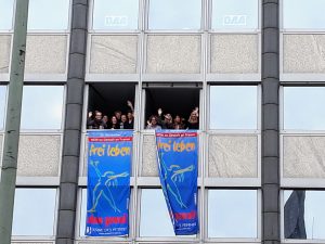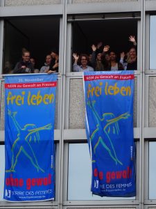 Neben Gewaltprävention fordert TERRE DES FEMMES auch die Schaffung von Aufmerksamkeit für die Situation gewaltbetroffener Mädchen. Öffentlichkeit für das Thema herzustellen, ist auch unser Ziel als Träger im Bereich der beruflichen Förderung von Frauen. Mit unserer Teilnahme an der Fahnenaktionen möchten wir im VbFF Solidarität mit allen Mädchen und Frauen, die weltweit Gewalt erfahren, zum Ausdruck bringen und unsere Teilnehmerinnen empowern, für ihre Rechte einzutreten.