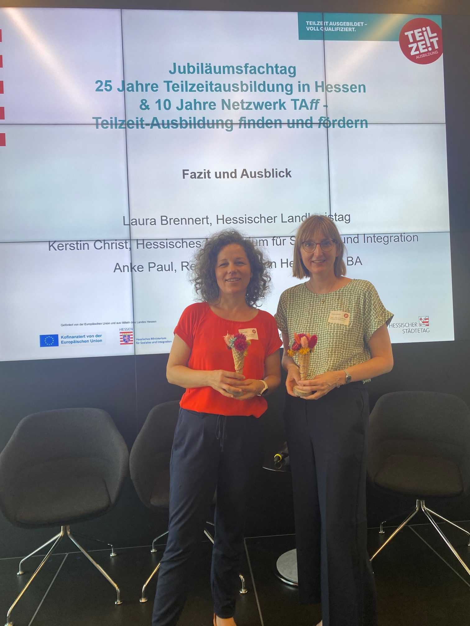 Am Dienstag, 20. Juni 2023 fand der Jubiläumsfachtag „25 Jahre Teilzeitausbildung in Hessen und 10 Jahre Netzwerk TAff“ in Frankfurt und via Zoom statt. Veranstaltet haben diesen Fachtag das Hessische Ministerium für Soziales und Integration, das Netzwerk Taff und die Servicestelle Teilzeit-Ausbildung unter aktiver Beteiligung des VbFF.